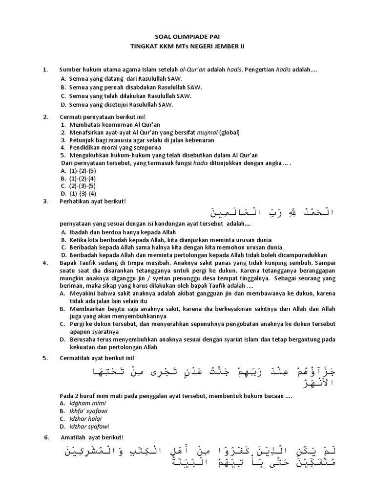 Soal Olimpiade Agama Sd : Soal Pendidikan Agama Islam Tingkat Sma Man Soalujian Net / Ulangan harian agama islam sd kelas 5 dan 6 semester 2.